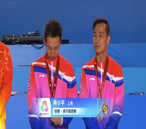 十五運會霹靂舞男子比賽中,上海運動員商小宇獲得銅牌。湖北隊王瑞苗獲得金牌,江蘇隊亓祥宇摘得銀牌。