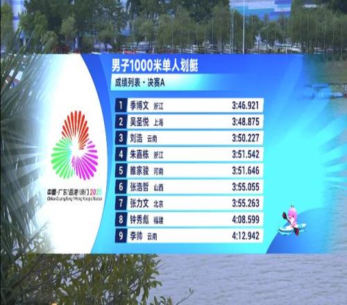 十五運會皮劃艇靜水男子1000米單人劃艇比賽中,上海運動員吳圣悅以3分48秒875的成績完賽,奪得銀牌。浙江選手季博文收獲冠軍,云南選手劉浩位列第三。