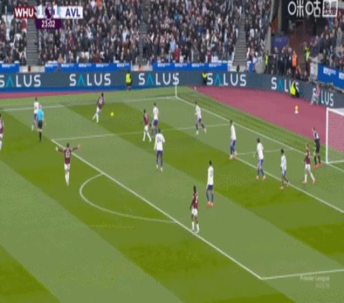 然而第24分鐘,維拉再次被進神仙球,波茨助攻,鮑恩門前一擋改變皮球方向入網,西漢姆聯再次取得領先。