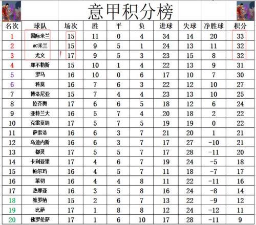 意甲最新積分戰報尤文3連勝追上AC米蘭差國米1分沖進前3