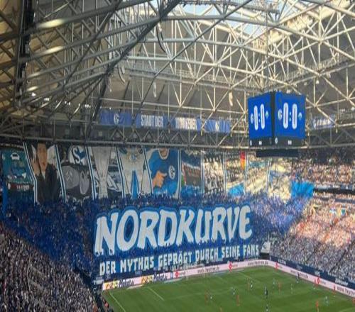沙爾克04地處德國魯爾工業(yè)區(qū),球迷氛圍狂熱。球隊主場是位于蓋爾森基興的費爾廷斯競技場。這座球場因沙爾克球迷助威時的狂熱氛圍被譽為“藍色堡壘”,是整個歐洲足壇都公認的魔鬼主場。