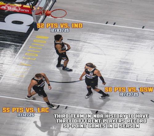 穆雷本賽季的競技狀態極其出色,至今場均砍下25.2分4.4板7助1斷全面數據,投籃命中率48.7%,場均以45.4%命中率扔進3.5記三分球,可他從未證明過自己的帶隊能力,NBA生涯目前為止都是在約基奇“庇護”下打球。
