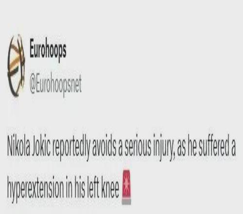 塞爾維亞媒體Meridian Sport從掘金內部人士處非正式獲悉,約基奇的傷勢屬于膝蓋過度伸展,并未造成嚴重損傷。