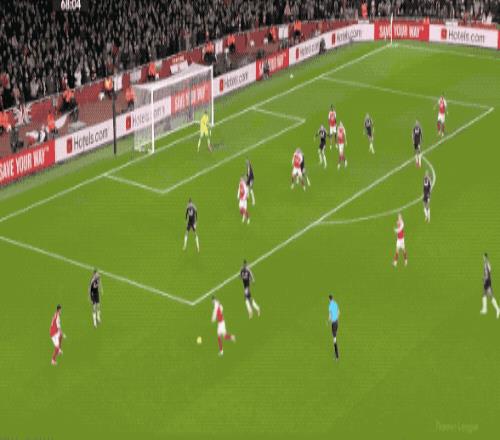 下半場開始僅僅3分鐘,阿森納獲得本場比賽的第一個角球,薩卡將球開出,加布里埃爾搶在馬丁內(nèi)斯之前,將球打進。