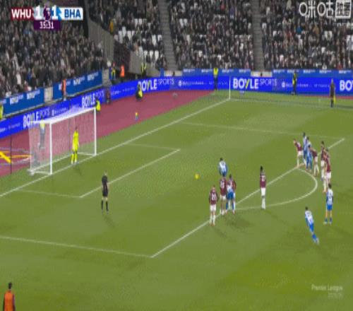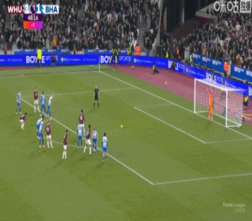 第32分鐘,揚庫巴-明特造點,維爾貝克操刀命中,布萊頓1-1!