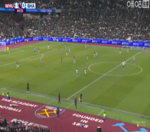 第10分鐘,帕奎塔妙傳,鮑恩冷靜破門,西漢姆聯1-0!