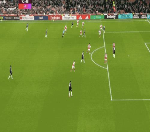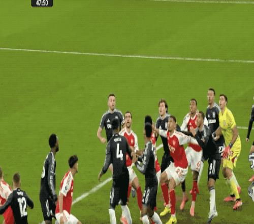第48分鐘,阿森納獲得本場第一個(gè)角球,薩卡開出,加布里埃爾在馬丁內(nèi)斯的身下?lián)岦c(diǎn),將球打進(jìn)。