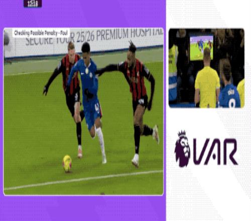 第12分鐘,裁判叫停比賽,VAR介入,慢鏡頭顯示,埃斯特旺突入禁區后,和塞梅尼奧有一個明顯的身體對抗后倒地,裁判回看后判罰點球。