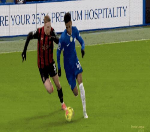 第24分鐘,切爾西前場4人組打出精彩配合,埃斯特旺策動進攻,加納喬助攻,恩佐利用重心的變化晃過防守起腳怒射,帕爾默趕緊閃躲,皮球直掛死角。