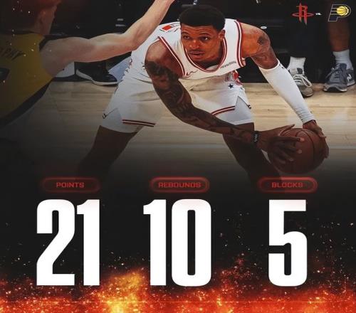 過去6場比賽,史密斯三分合計47投21中,這是相當可怕的數據。面對步行者時,小賈全場34分鐘16中8,三分7中3砍下20分10板2助攻3帽的攻防一體表現。其實小賈在火箭打死亡五鋒時作為中鋒使用是靠譜的。還記得23-24賽季嗎?火箭曾在申京受傷的情況下,靠小賈去打中鋒,阿門大前,杰倫格林剛好爆發,火箭打出12勝3負的月最佳戰績。