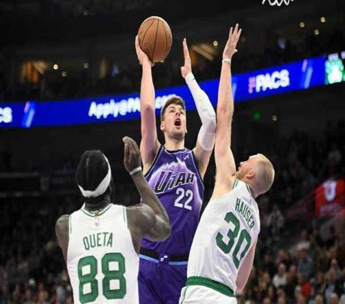 凱爾特人上一場客場108-114輸給開拓者,爵士過去兩場連續(xù)爆冷戰(zhàn)勝活塞與馬刺收獲2連勝,本賽季首次交鋒凱爾特人主場103-105惜敗爵士。本場凱爾特人缺少塔圖姆,爵士缺少樂福、貝利、凱斯勒與尼昂。首節(jié)開局凱爾特人6-10落后,爵士一波8-0攻勢擴(kuò)大12分優(yōu)勢,凱爾特人連追5分。爵士再度擴(kuò)大10分優(yōu)勢,凱爾特人持續(xù)被壓制20-30落后,布朗引領(lǐng)一波8-1攻勢追分,爵士回敬一波7-3攻勢拉開比分,首節(jié)結(jié)束凱爾特人31-38落后爵士。首節(jié)凱爾特人28中13,其中三分14中3,布朗與科塔均得到8分,爵士29中15,其中三分11中5,喬治11中6得到15分與馬爾卡寧9分。