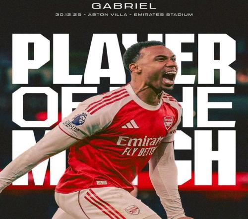 在今天凌晨進行的英超第19輪比賽中,阿森納主場4-1擊敗阿斯頓維拉,賽后,加布里埃爾被阿森納評為本場比賽隊內最佳球員。