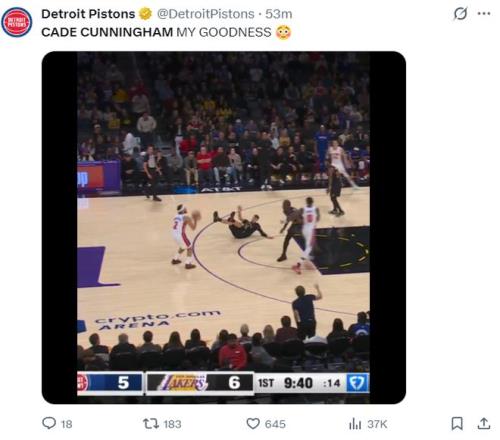 末節開場湖人是連送6次失誤,活塞直接將8分的優勢擴大到20分,雷迪克提前放棄比賽,CC也提前打卡下班,末節CC5分3籃板2助攻沒有失誤,全場比賽坎寧安32分鐘,19中12,三分4中1,拿到27分11助攻5籃板1搶斷5失誤,命中率63.2%,突破太輕松,側面數據湖人防守爛到極致。