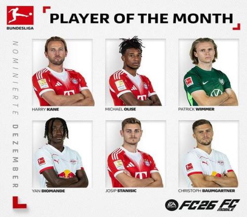 北京時間12月31日,德甲12月最佳球員候選名單公布,這6名球員為凱恩、奧利塞、維默爾、迪奧曼德、斯塔尼西奇、鮑姆加特納。