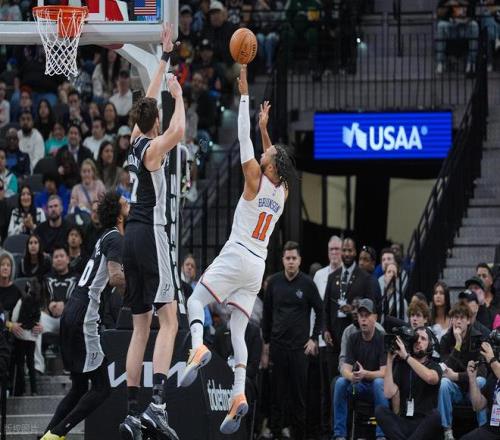 易邊再戰,巴恩斯的上籃為馬刺吹響追分號角,將分差縮小至8分。但尼克斯迅速回敬11-5的攻勢,將領先優勢重新擴大到14分。此時文班亞馬持續輸出火力,帶領馬刺多點開花,憑借一波16-2的窒息式反擊實現86-86的平分。此后賽場進入白熱化爭奪,馬刺連得5分反超比分,克拉克森的三分與布倫森的連續得分(兩罰全中+兩記三分獨得8分)又讓尼克斯重掌主動權,三節戰罷馬刺以93-102仍落后9分。
