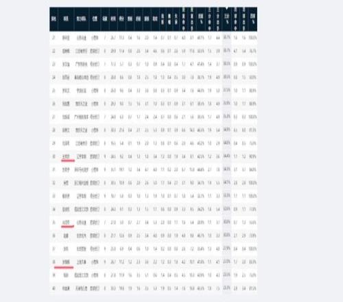 國家隊后衛線球員,三分投的最好的暫時是王嵐嵚,均出手3.6次,命中率只有34.4%,排在榜單第30。高詩巖排在第35,胡明軒排在第41,前者場均三分命中率30%左右,后者不足30%。程帥澎因傷缺席多輪比賽,場次不夠暫未進入榜單。