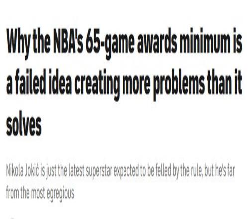 現在,有些球迷抱怨說,65場規則之所以引發熱議,只是因為約基奇錯失了贏得第四座MVP獎杯的機會。但實際上,這與約基奇本人毫無關系。無論有沒有這條規則,他的傷勢都為亞歷山大鋪平了MVP的奪冠之路。除非亞歷山大也遭遇傷病,否則65場規則幾乎不會影響MVP的歸屬。