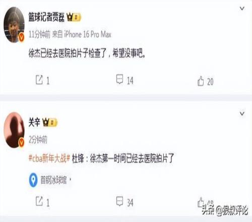 涉及到徐杰傷病問題,杜鋒賽后表示:徐杰第一時間去了醫(yī)院拍片,希望無大礙。