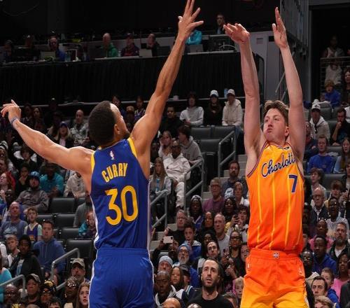 但他的表現我們都知道了,一度能夠碾壓狀元弗拉格,領跑最佳新秀榜單。新秀第一年,克尼佩爾只用了18場比賽就扔進了63記三分,要知道庫里用了40場。而命中100記三分,他用了29場,同樣刷新NBA歷史紀錄。所以克尼佩爾的模板,也被視為庫里。更有媒體表示,克尼佩爾在未來是有可能超越庫里的存在,因為他的防守比庫里要出色。而今天,克尼佩爾對上了其模板,黃蜂隊主場迎戰金州勇士。很快,克尼佩爾就見識到,這位頂級超巨的能力。持球迎著防守,還能命中3+1。甚至不看籃筐的隨手一拋,也能命中!什么是手感,這就是手感!