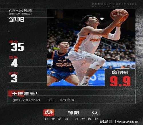 看看鄒陽的表現(xiàn),本場比賽,鄒陽首發(fā)出戰(zhàn)33分鐘,17投13中,三分球9投7中,砍下35分3籃板4助攻,場上正負(fù)值為+22。