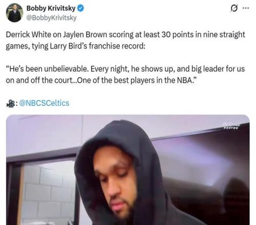結(jié)果布朗硬是不認命,持續(xù)交出高分表現(xiàn),也讓身旁其他球員看到了贏球的希望,隨著懷特等球員先后找到比賽狀態(tài),凱爾特人也快速扭轉(zhuǎn)局面重返東部頂級球隊行列。