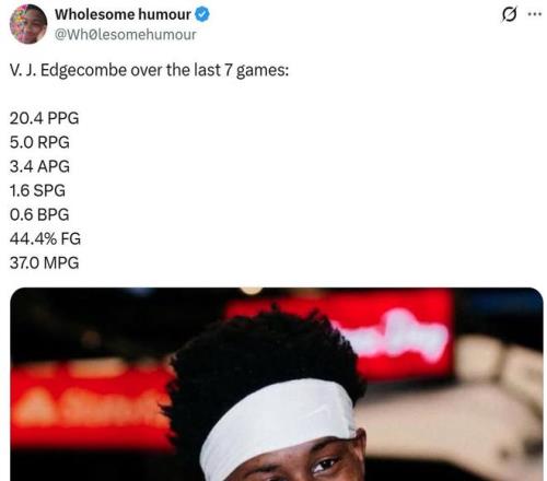 過去7場比賽,埃奇庫姆場均可以拿到20.4分5板3.4助1.6斷0.6帽全能數據,展現出一名超級新星應有的風采與潛質。