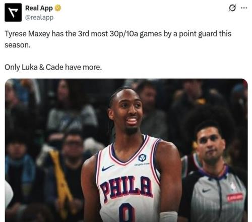 憑借這樣的表現,馬克西本賽季已經3次單場至少交出30分10助,高居控衛位置第三,僅次于東契奇7次與坎寧安6次。