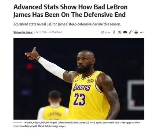 高階數(shù)據(jù)很少對(duì)老將巨星友好,但本賽季勒布朗·詹姆斯在防守端的表現(xiàn)更是慘不忍睹,這是他職業(yè)生涯中首次出現(xiàn)如此不容忽視的局面。