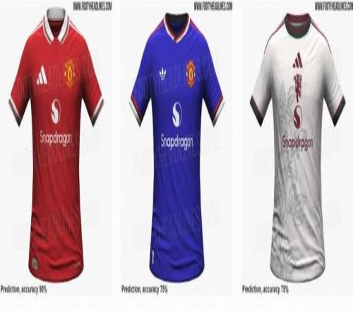 曼聯下賽季客場球衣主色調為亮眼的皇家藍,并以紅白兩色點綴;第三球衣則采用了米白色設計,帶有大面積的玫瑰印花和居中隊徽。