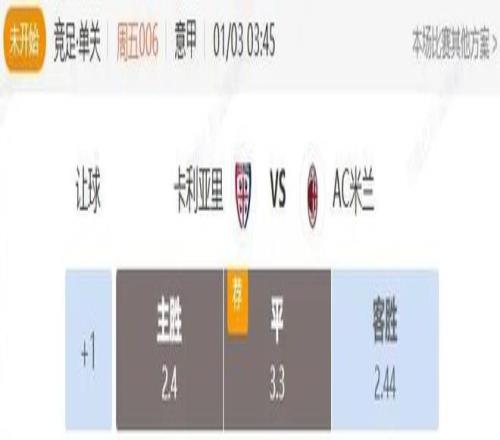 本場給到一球的讓步,應該是考慮到AC米蘭上輪大勝,且近兩次交手均握手言和,AC米蘭此戰求勝欲望強烈。不過結合近期兩隊狀態和成績,卡利亞里近期狀態也不差,且近3個主場不敗,所以感覺讓步高了少許。似乎在有意放大AC米蘭上場勝利和贏下本場比賽就能登頂榜首這兩件事給大家帶來的信心。雖然歷史交手近6次卡利亞利2平4負,劣勢明顯。但是卡利亞利近期的表現,展示出了防守端的硬度和進攻火力的提升。所以我認為本場比賽,實力強大的AC米蘭不會贏得太輕松,首看AC米蘭小勝一球,考慮到上輪客場讓一追二逆轉取勝都靈和前段時間爆冷擊敗羅馬的那一場,展現出了不俗的韌勁和黑馬的氣質,這場比賽卡利亞里會不會又給人眼前一亮呢?