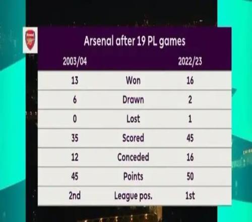 英超半程戰罷,積分榜前七名的格局可謂涇渭分明又充滿懸念。阿森納以45分強勢領跑,這個分數已經與阿森納2003-04賽季不敗奪冠時的半程積分相同,展現出了他們爭奪冠軍的穩定性和決心。不過,2年前阿森納曾有過半程50分的壯舉,但仍在最后時刻被曼城反超。