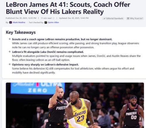 東契奇明顯復胖+41歲詹姆斯老邁不堪!湖人最大的短板防守問題徹底藏不住了,美媒《heavy》也果斷建議湖人3換1完成針對性補強。