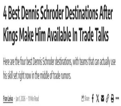 身背3年4500萬美元合同,國王隊正式甩賣施羅德!美媒《FW》曬出其4大下家候選,其中重回勇士隊攜手庫里爭冠高居第二名。