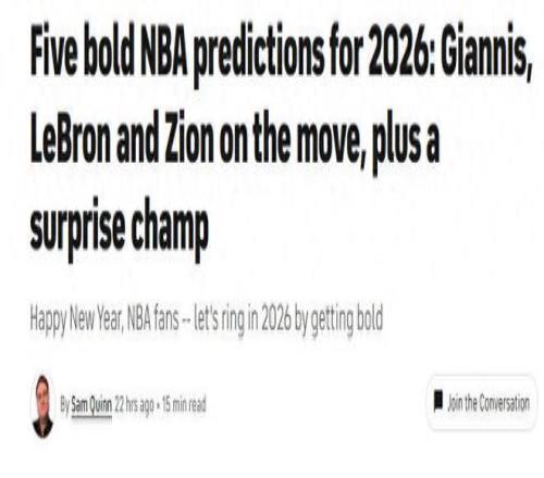 詹姆斯重回騎士!在26年到來之際,美媒《CBS》曬出26年對于NBA的5個大膽預測,其中包括字母哥加盟熱火,以及掘金再度奪冠。