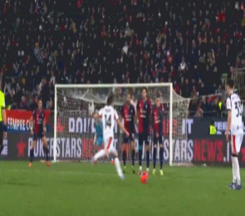 第3分鐘,卡利亞里禁區外遠射一腳,球打高了
