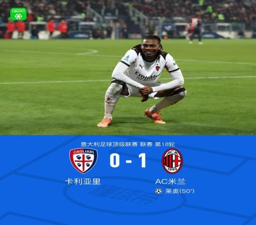 北京時間1月3日,意大利足球頂級聯賽第18輪,卡利亞里主場迎戰AC米蘭。比賽中,上半場阿波多、馬齊泰利打門造險,下半場萊奧破門+中柱,普利希奇、莫德里奇打門被撲。憑借此次進球,AC米蘭客場1比0戰勝卡利亞里。