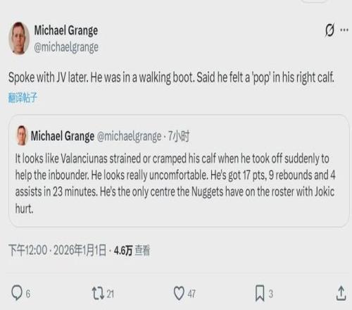 今天據NBA名記Shams報道,瓦蘭的右小腿出現了拉傷,預計需要休養4周才能接受再次檢查,確定情況。