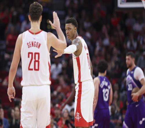 自從兩位鋒線悍將芬尼·史密斯和伊森復出之后,火箭隊整體的攻防強度得到提升。之前芬尼·史密斯和伊森不在,火箭隊只能靠著申京和杜蘭特單打,球隊很少有配合,外線的三分射手群也不夠穩定。有的時候他們能將三分命中率提升到40%以上,有的時候在一些輸球的比賽里,火箭隊的三分命中率可能只有20%多,根本沒法贏球。