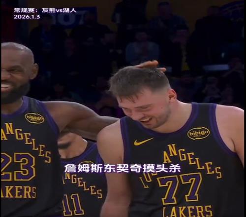 1月3日消息,1月3日結束的NBA常規賽中,湖人主場128-121擊敗灰熊。本場比賽,詹姆斯發揮出色砍下31分9籃板6助攻,比賽最后時刻,詹姆斯和東契奇在場上來了一出“摸頭殺”,老詹一臉慈祥,77則是享受其間。
