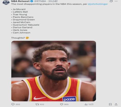 NBA名記John Hollinger評選本賽季最失意的球員,莫蘭特高居第一,三球排名第二,特雷楊第三。3-9名分別是:班凱羅、追夢、麥凱恩、亞布塞萊、加蘭、赫伯特-瓊斯、卡梅倫-約翰遜。前三個最有代表性,也是最可能離隊的球員。