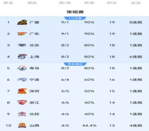 憑借一波5連勝戰績,上海隊成為了最強黑馬,排名躍居第四,僅次于廣廈隊、北京隊、廣東隊三支爭冠熱門。