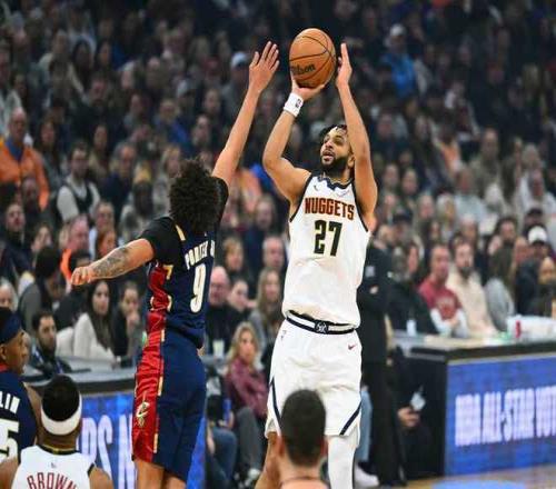 中場休息回來,掘金連續兩節單節得分35+,且限制騎士第二次單節不足30分。掘金率先66-62反超比分,米切爾三分命中,掘金一波10-0攻勢擴大11分優勢,隨后掘金被追到79-78僅領先1分。掘金一度84-86被反超比分,掘金內外開花一波13-2攻勢反超比分,掘金單節38-26凈勝12分,三節結束掘金97-88反超騎士。前三節比賽,掘金三分35中16,穆雷5記三分31+4+7引領掘金4人得分上雙;騎士三分30中14,米切爾5記三分27分引領騎士3人得分上雙。