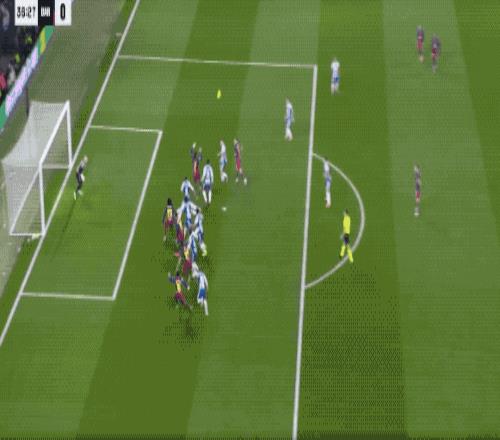 第37分鐘,巴薩獲得了前場任意球,拉菲尼亞傳中,費蘭·托雷斯跑得太快,不得不后仰頭球攻門,皮球頂偏。