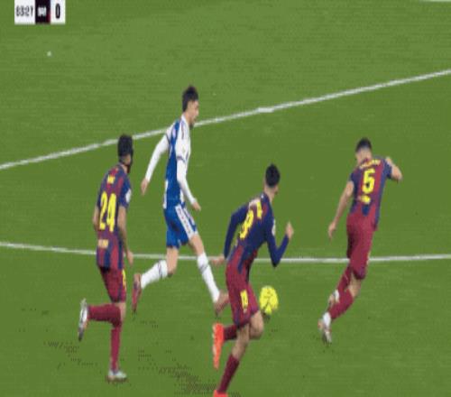 開場不到3分鐘,亞馬爾送出傳中,卡萊羅居然踢漏了,費蘭·托雷斯也沒有想到對方中衛(wèi)會出現(xiàn)失誤,錯失良機。
