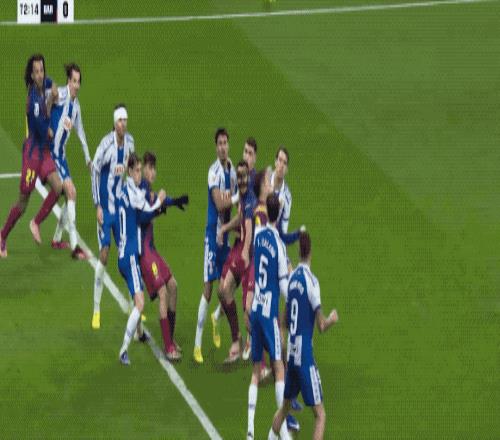整個上半場,西班牙人完成了7次射門,巴薩則只有3次,兩隊互交白卷。