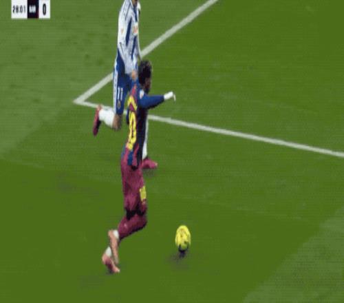 第28分鐘,接到埃里克·加西亞的傳球,亞馬爾上演馬賽回旋,輕松晃過后衛(wèi),之后的似傳似射沒能命中目標。