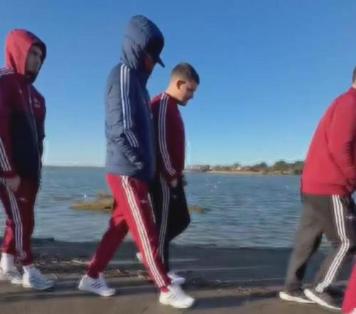 賴斯和阿森納首席理療師墨菲跟隨全隊(duì)進(jìn)行了賽前散步。