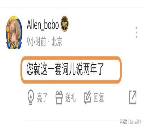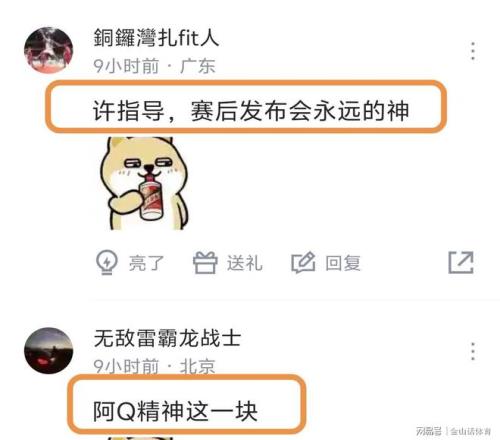 對(duì)于許利民的賽后總結(jié),網(wǎng)友們也是紛紛吐槽。“您就這一套詞兒說(shuō)兩年了”;“沒(méi)看到希望,只看到了絕望。”;“許指導(dǎo),賽后發(fā)布會(huì)永遠(yuǎn)的神”;“阿Q情神這塊”;“你是真固執(zhí)。第三節(jié)那個(gè)陣容你是真敢安排。”;“永遠(yuǎn)充滿(mǎn)希望,永遠(yuǎn)熱淚盈眶,永遠(yuǎn)豪情滿(mǎn)懷,永遠(yuǎn)坦坦蕩蕩。”;“又是精神勝利,經(jīng)典發(fā)布會(huì)逆轉(zhuǎn)”……