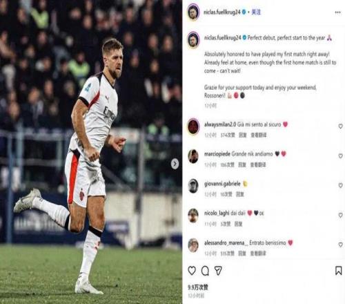 社媒丨菲爾克魯格紀念米蘭處子秀 米蘭圈 2026-01-04 10:18:19 米蘭圈米蘭在本輪意甲1-0卡利亞里,新援中鋒菲爾克魯格替補完成首秀。他也在賽后通過社媒發文紀念:“完美的首秀,完美的新年開局 非常榮幸能立刻上演我的處子秀!雖然第一個主場比賽還沒到來,但我已經感覺賓至如歸——我已經迫不及待了!感謝大家今天的支持,祝羅森內里們周末愉快!”32歲德國前鋒菲爾克魯格租借加盟米蘭半個賽季,合同中包含500萬歐元的可選擇買斷條款。意甲免費觀看_米蘭免費觀看_處子秀免費觀看_意甲高清在線_米蘭高清在線_處子秀高清在線 意甲 米蘭 處子秀 卡利亞里隊 歐洲杯揭幕戰 尼克拉斯·菲爾克魯格 上一篇: 原創丨鋒線有效搭檔,禁區搭子效應 下一篇: 意甲最新積分戰報爭4激烈!羅馬不敵亞特蘭大被尤文擠出前4