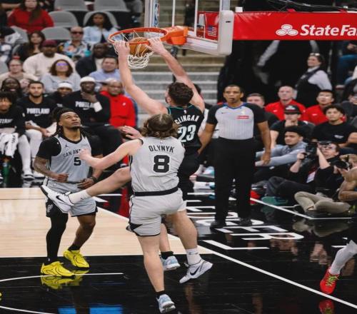 半場戰(zhàn)罷,開拓者55-51領先馬刺4分。克林根上半場只打了17分鐘,8投7中砍下18分8籃板2助攻。開拓者主帥斯普利特雖然是中鋒,但他不擅長用內(nèi)線球員,如果克林根換支球隊,數(shù)據(jù)會更好。易邊再戰(zhàn),馬刺很快追平比分。
